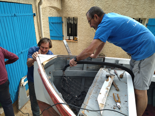 La situation de la Partègue est loin d'être idéale. Nous avons été lauréat du Fonds d'Intervention Maritime (FIM)et l'Etat nous a accordé les 15 000 euros que nous demandions pour stratifier le Liberté. Nous devions préparer la coque dans un local au salin des Pesquiers, ce local dont on nous parle depuis des années. Malheureusement aucune solution n'a pu être trouvée. On nous accordait la possibilité d'utiliser un partie d'un petit hangar pour stocker du petit matériel et une vieille coque (sic). On ne pouvait pas travailler et le Liberté a besoin d'être pris en charge rapidement. Nous avons traité avec un chantier professionnel hyérois pour réaliser totalement le travail. Cette décision nous coûte très cher mais nous n'avons pas le choix. En plus nous avons dû, d'urgence, vider tous les objets du patrimoine que nous avions stockés, après l'exposition de l'an dernier dans un autre petit hangar des Pesquiers avec l'autorisation des institutions. Bilan : Plus d'atelier de restauration aux Pesquiers, plus de lieu de stockage aux Pesquiers : c'est la première fois depuis 1993. Plus la possibilité de travailler dans notre petit atelier de Giens.. Nous avons encore des grosses choses à mettre à l'abri dont le moteur du Liberté. Nous aurons du mal à entrer. La situation est critique. Heureusement l'Etat et le FIM continuent à nous soutenir malgré les modifications du projet qui devait impliquer les collectivités locales. Une élue du Département a fait son possible pour nous soutenir et nous a proposé 1500 euros de subvention exceptionnelle. Nous les remercions, avec ces soutiens financiers nous allons y arriver. |