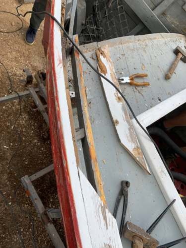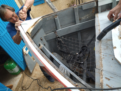 Voilà le problème. Le bois de la quille et du galbord est en très mauvais état : il a rempli son rôle pendant 88 ans. |