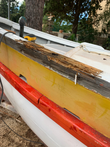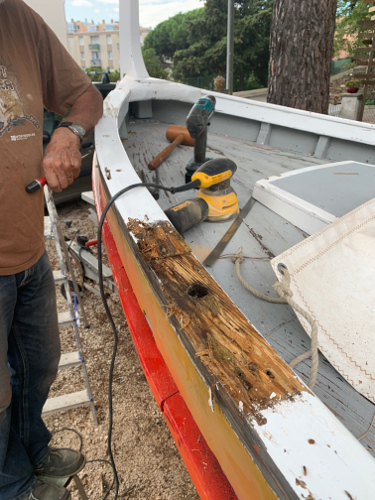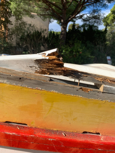 Le bois est en mauvais état par endroit. il faut faire de la chirurgie pour sauver cet espar. |