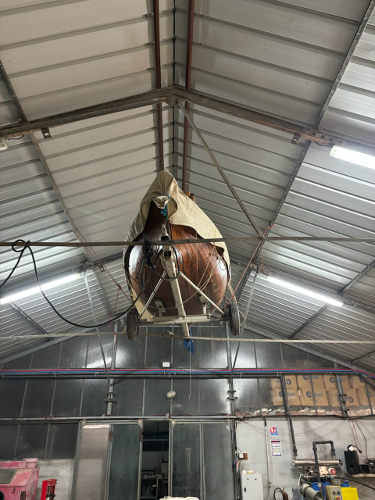 Au chantier, ils ont retourné le Liberté, une opération très délicate qui s'est très bien passée. Jean-Pierre et Steve étaient sur place. |