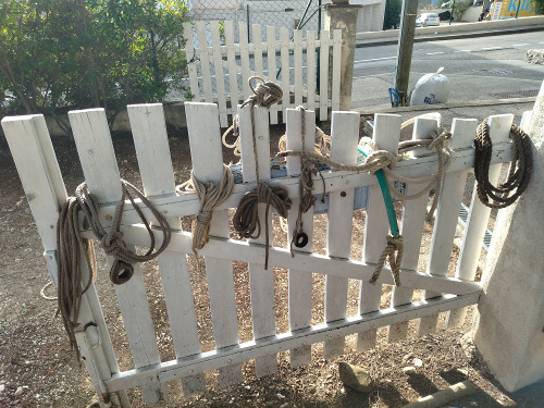 Après avoir été lavés et rincés, les cordages sont mis à sécher... là où on peut. |