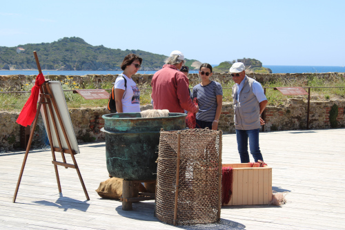 Des personnes travaillant pour l'IFREMER sont venues échanger avec nous et nous ont félicité. Une équipière de PANDORA, le célèbre aviso italien, admire la maquette car elle travaille dans le musée de la tonara (la madrague) en Sicile. |