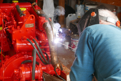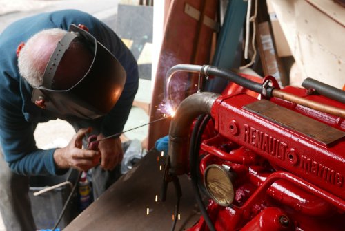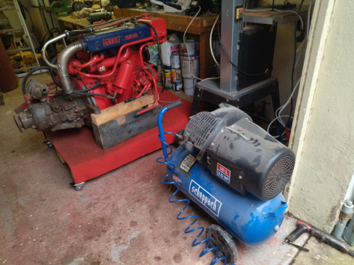 Avril 2025 Georges, notre mécano qui entretient ce moteur depuis 25 ans en profite pour faire une petite révision. Réglage des culbuteurs, changement des rouets de la pompe à eau, vidanges... |