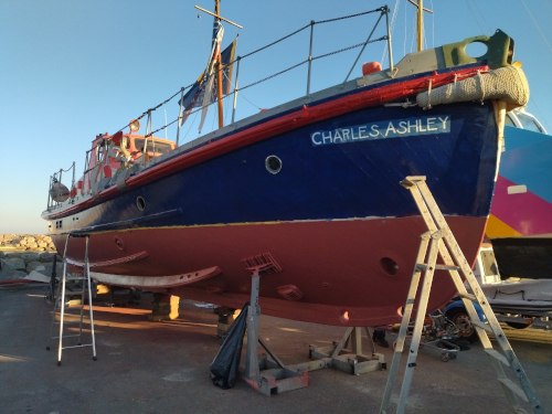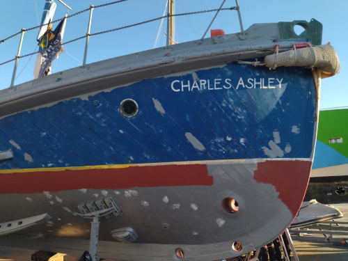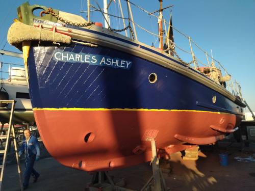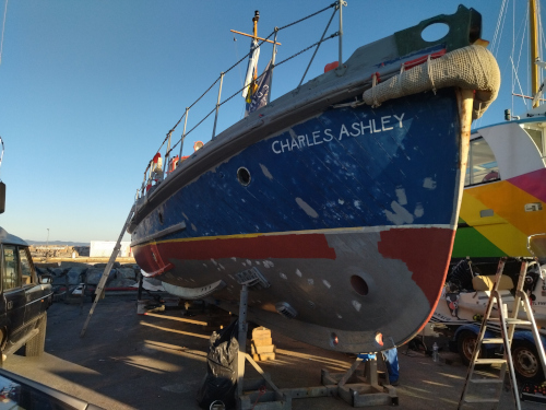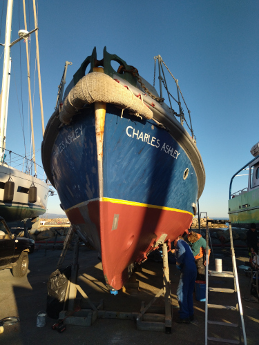 Et oui, le Charles Ashley a aussi besoin de soins. Un bateau patrimonial que nous avons restauré avec Carl il y a déjà 2 ans. Un bon carénage est nécessaire. |