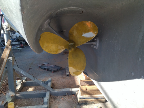 Carl fait traiter les hélices avec un produit miraculeux. Le chantier est terminé et le Charles sera mis à l'eau le lendemain. |