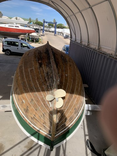 Nous passons de l'un à l'autre. Nous sommes allés prendre des nouvelles du Liberté. Il a bien séché. Pas facile cette année avec la pluie qui est tombée. Il repose à l'envers dans un tunnel très aéré. Il a été poncé sérieusement. Le taux d'humidité du bois est contrîolé chaque semaine. Il faut encore un peu de patience. |