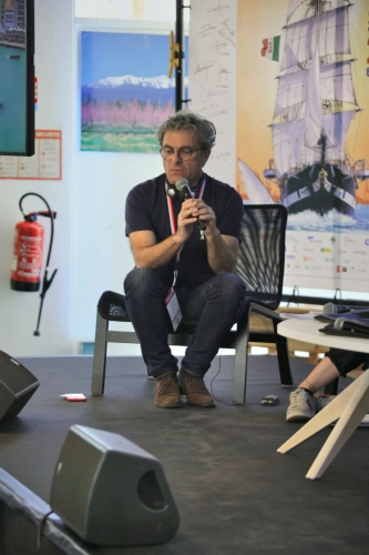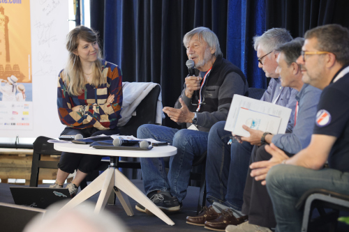 Deux jours de tables rondes dédiées aux valeurs d'Escale à Sète : l'environnement, la culture, la transmission et la solidarité. Wolfgang, le directeur lance les rencontres. |