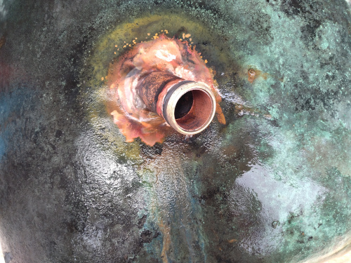 Qu'est-ce que c'est ? C'est le tuyau qui sort du chaudron à teinture qui se termine par le robinet pour verser la tencho dans le bigoua. Il était cassé. Philippe, a réalisé en urgence une brasure et un système démontable pour faciliter le transport du chaudron et le renforcer. Pourquoi en urgence? |
